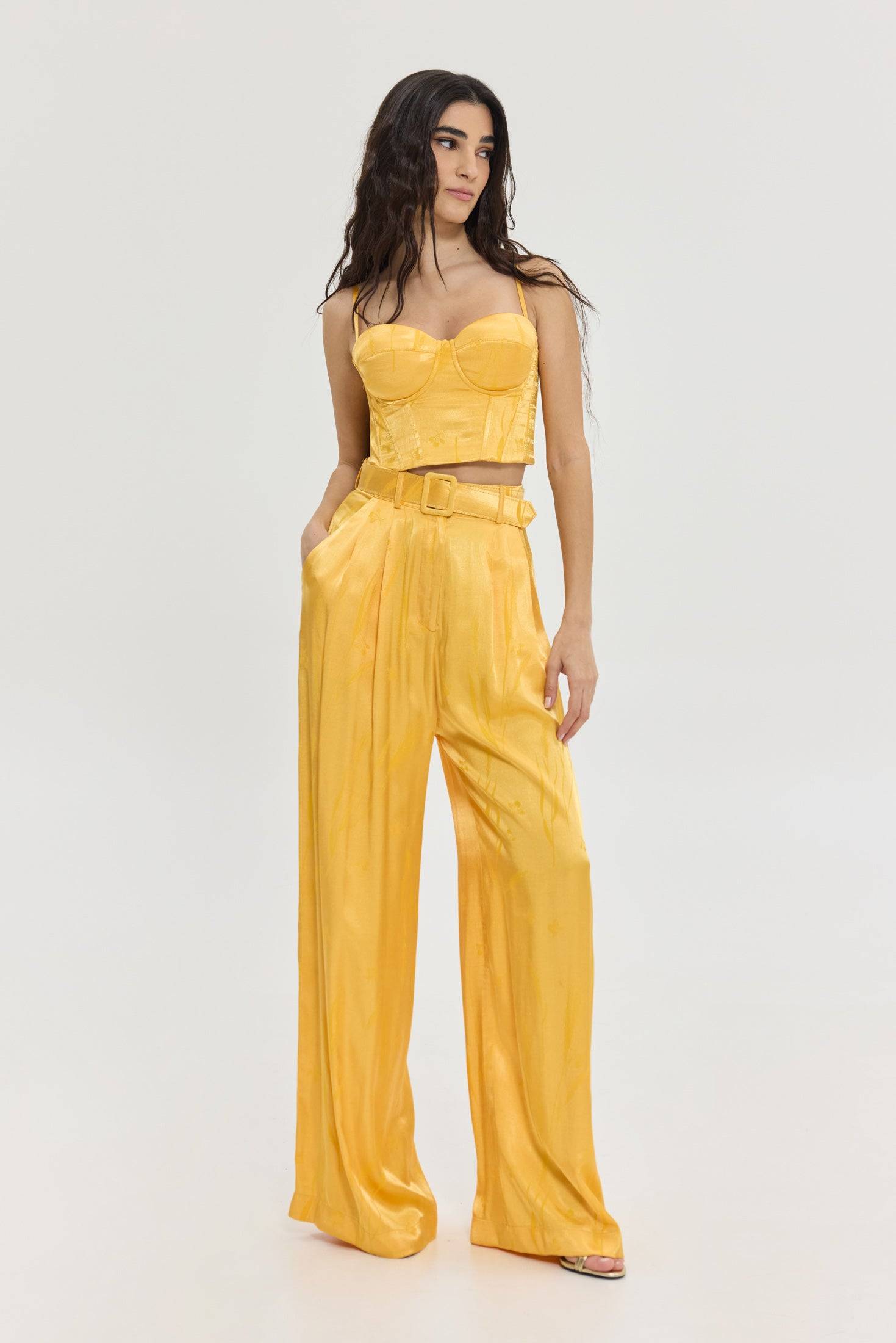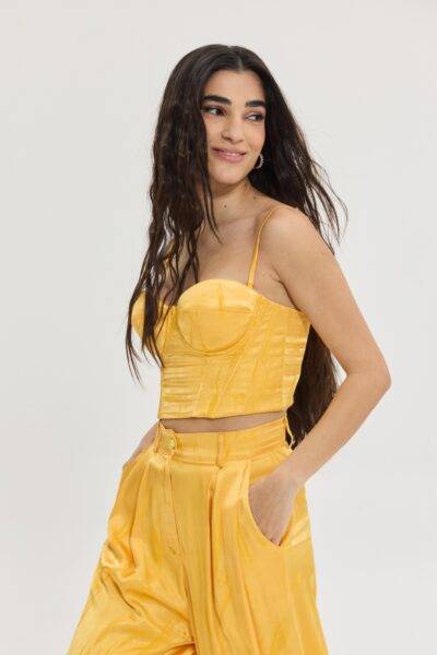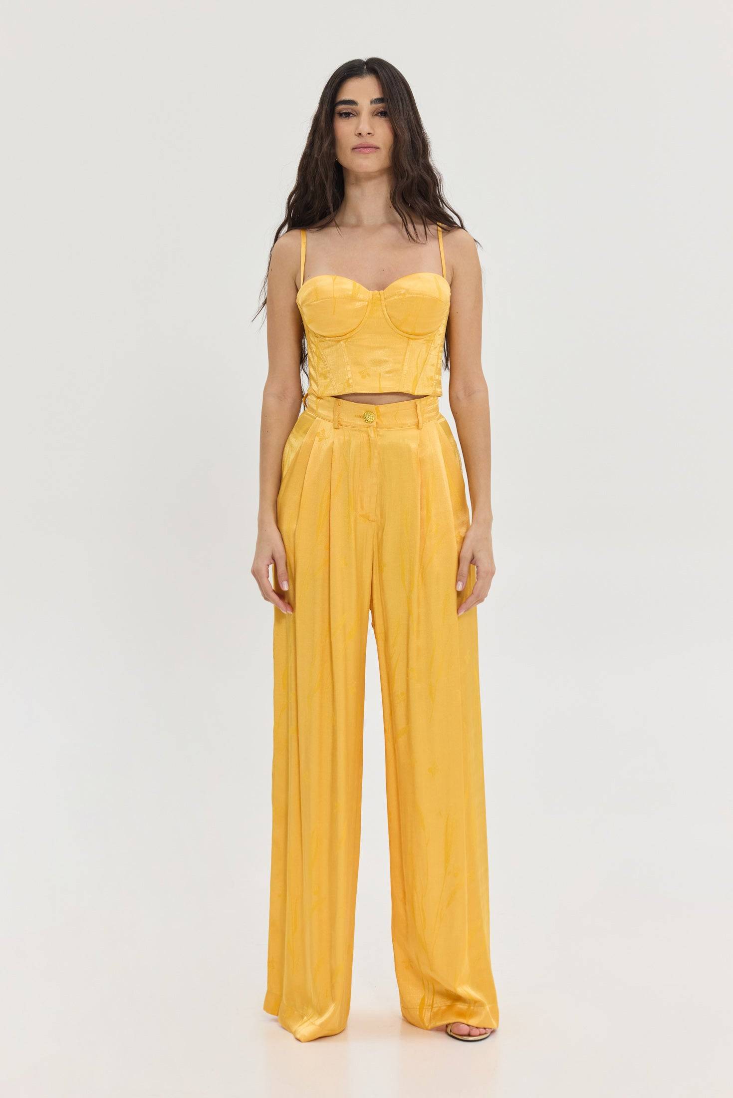 - Τι είναι η Jacquard σατέν βισκόζη και γιατί προσπαθήσαμε τόσο να πετύχουμε τον τέλειο συνδυασμό; Είναι το πιο μαλακό και δροσερό ύφασμα που θα φορέσεις κι εμείς τη φτιάξαμε με το δικό μας print σε tone to tone sunset orange. Πολλές προσπάθειες για το “τέλειο” χρώμα και την ισορροπία.