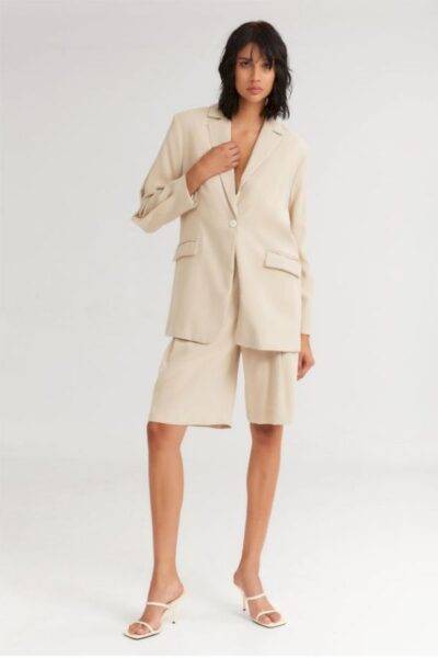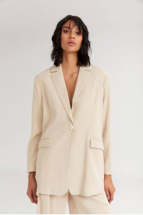 To Melted IceCream Blazer Vanilla είναι το μονόκουμπο σακάκι, σε oversized γραμμή και πιέτα στο μανίκι που έρχεται για να δώσει άλλον αέρα στους στυλιστικούς σου συνδυασμούς.
