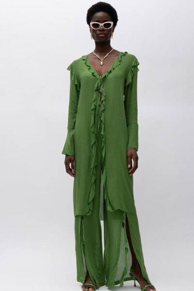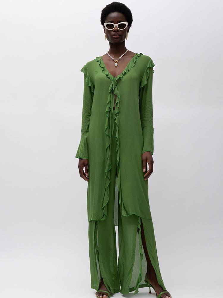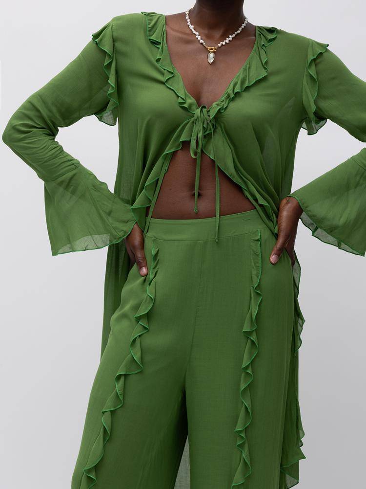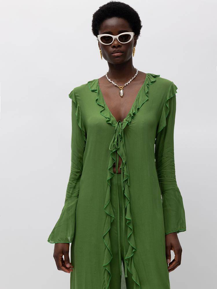 Άμεση παραλαβή / Παράδoση 1 έως 3 ημέρεςLorena cardigan green MALLORY: Ζακέτα see-through με βολάν σε χακί χρώμα από την MALLORY.