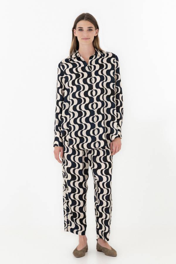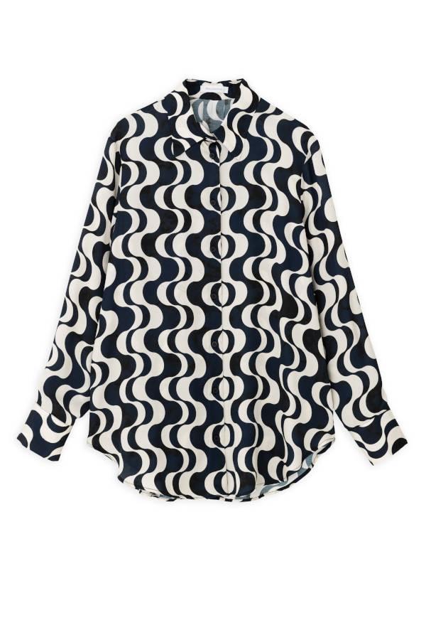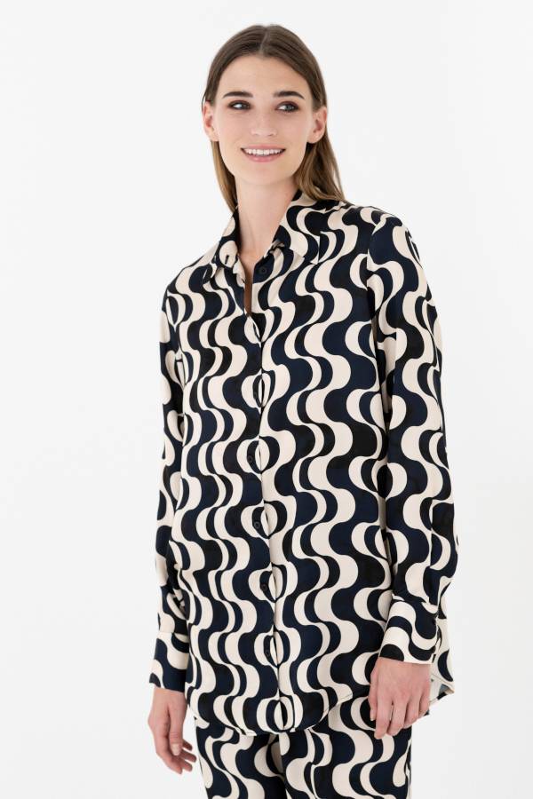 SATIN PRINT OVERSIZED SHIRT SH7193 BLACK