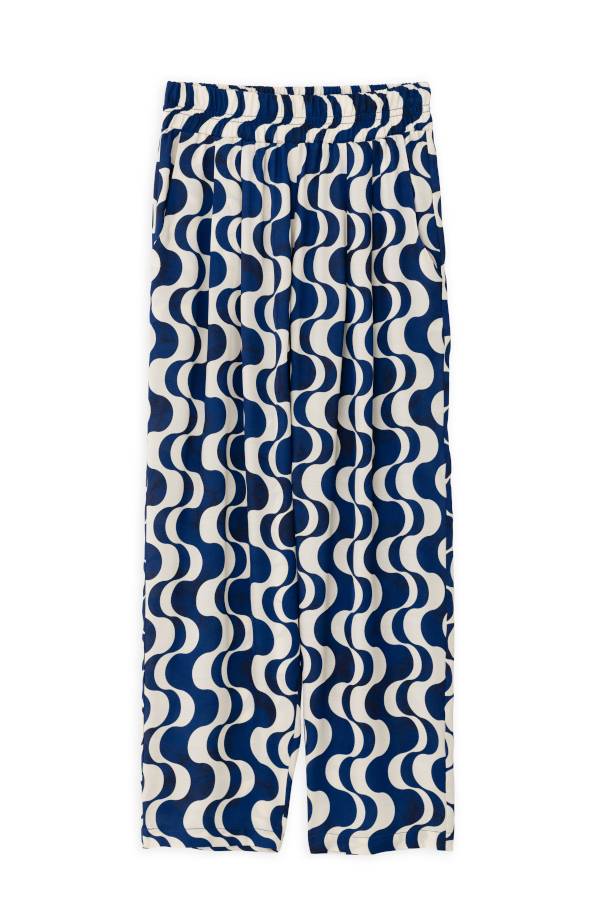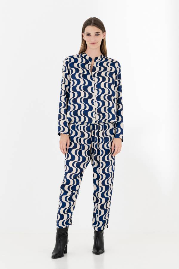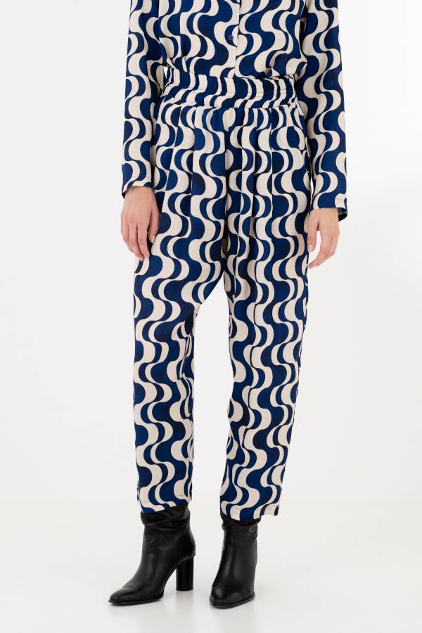 SATIN PRINT PLEATED PANTS TR4447 BLUE